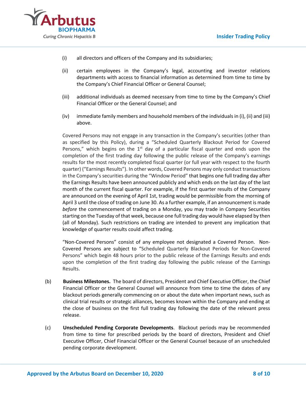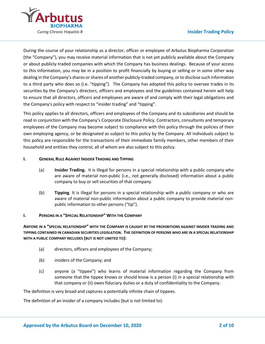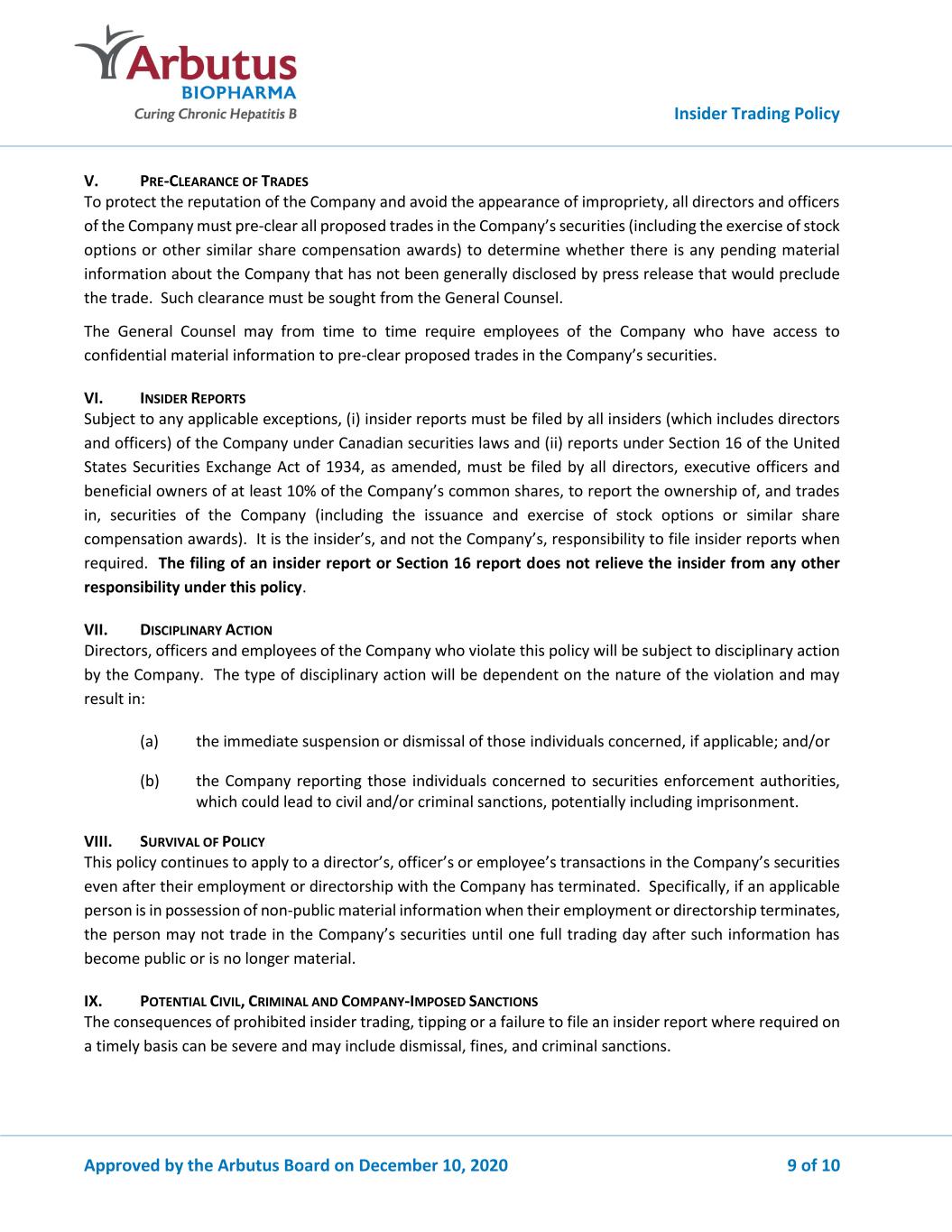 | | ARBUTUS BIOPHARMA CORPORATION |