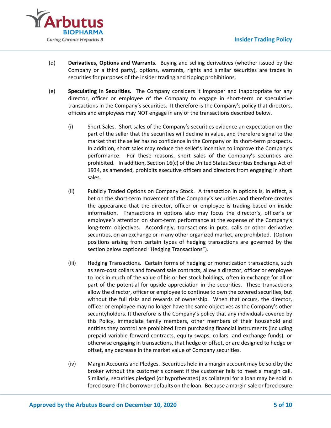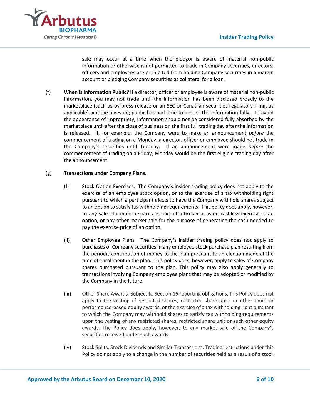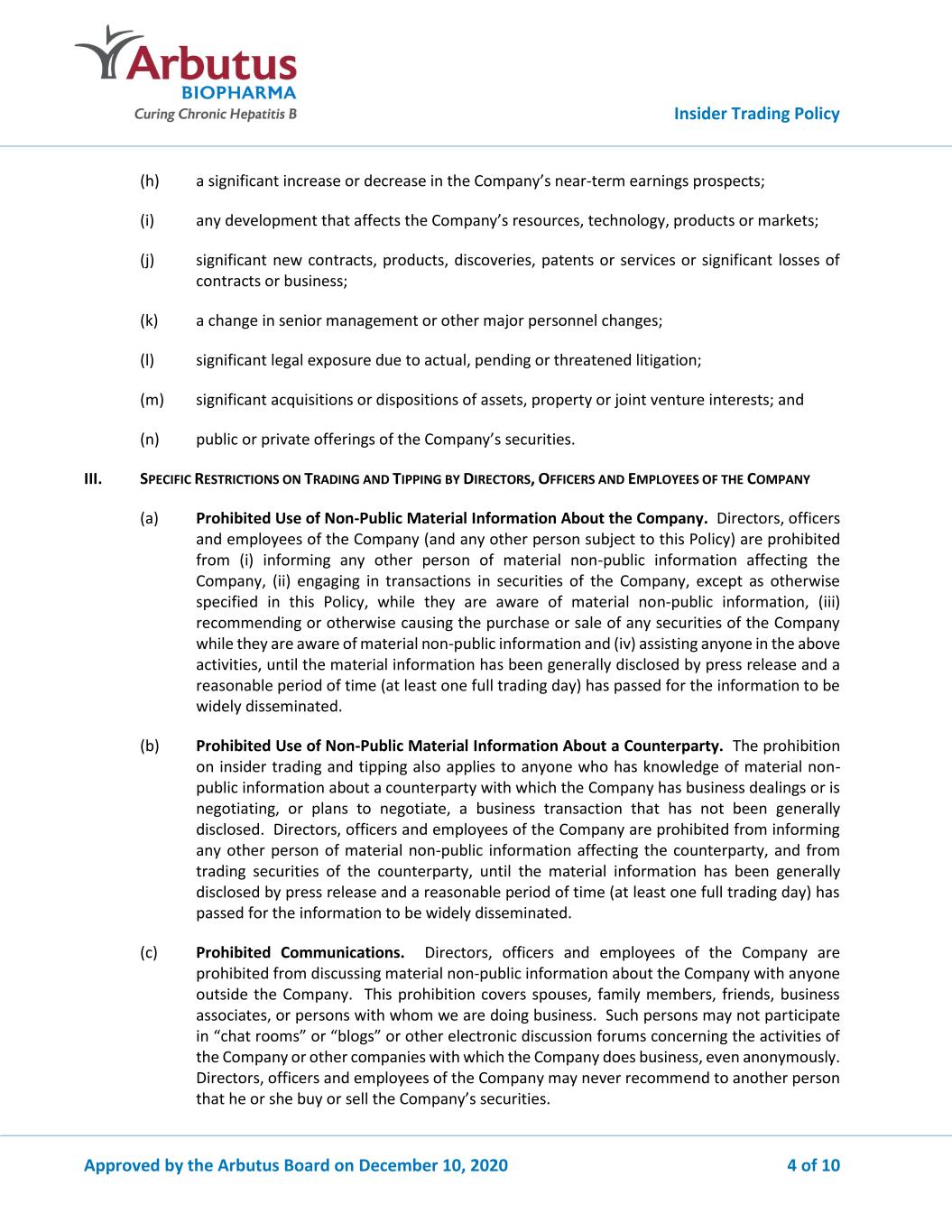 | | ARBUTUS BIOPHARMA CORPORATION |